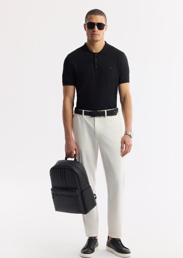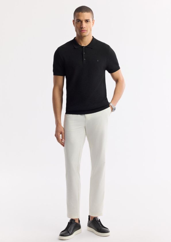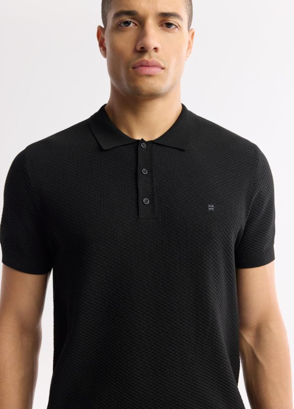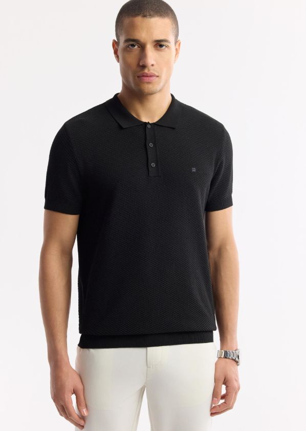 Воротник-поло с тремя пуговицами, смесь вискозы, текстурированная ткань, трикотажный воротник, рукава и подол в рубчик, вышитый логотип на груди, футболка из трикотажного полотна классического кроя