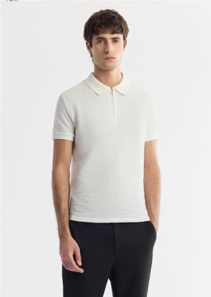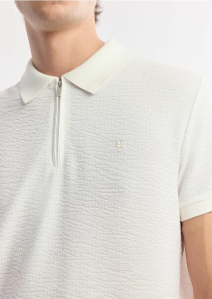 Воротник-поло на молнии, жаккардовый узор, вышитый логотип на груди, ребристый воротник и концы рукавов, эластичная ткань, футболка прямого кроя