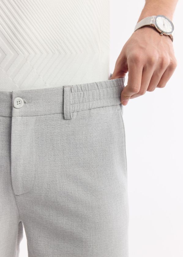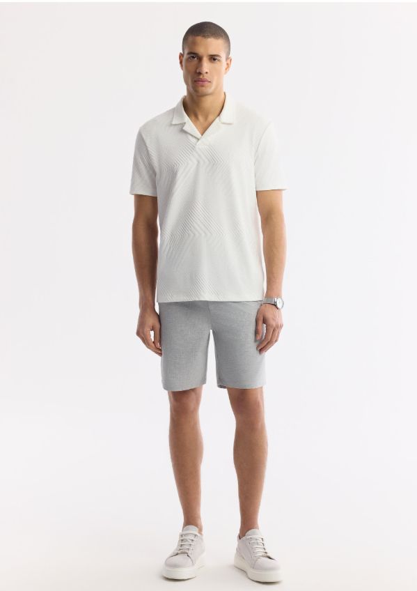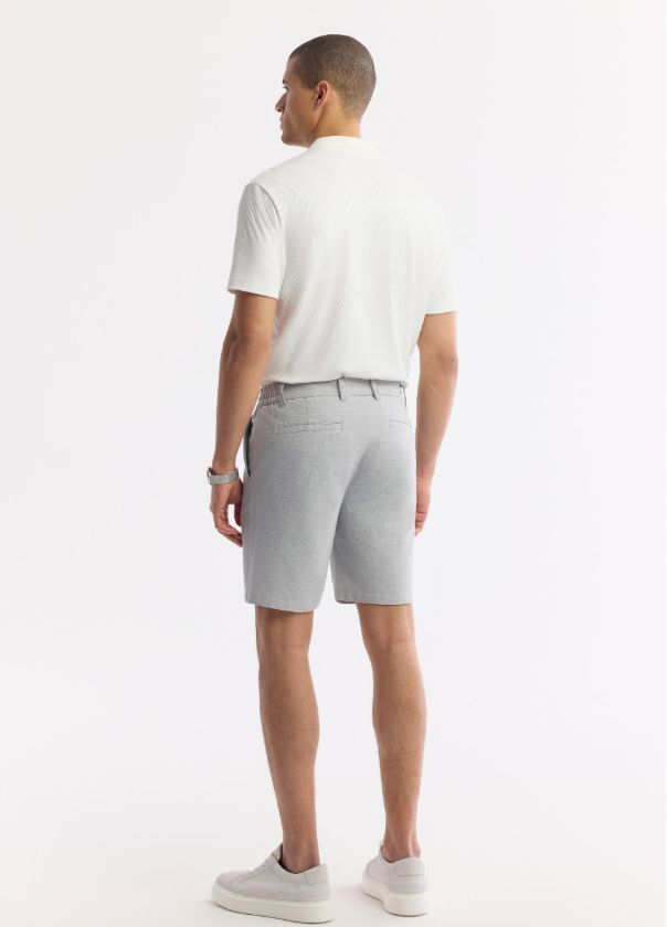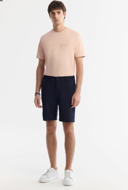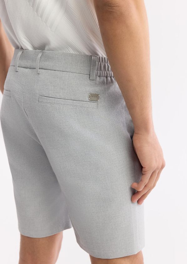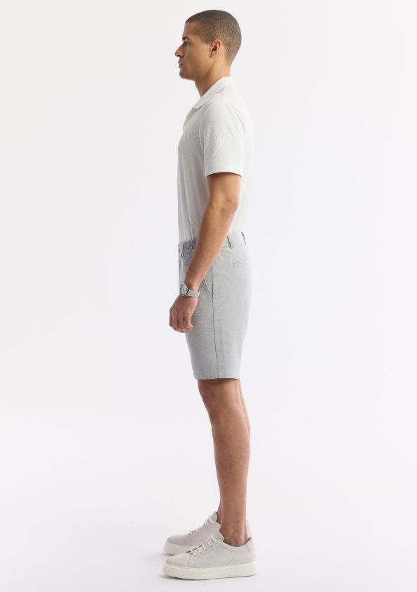 Боковые карманы, эластичная резинка по бокам, тиснение, застежка на молнию и двойную пуговицу, карман Fletto сзади, кожаная фирменная деталь на кармане, облегающие шорты-чиносы